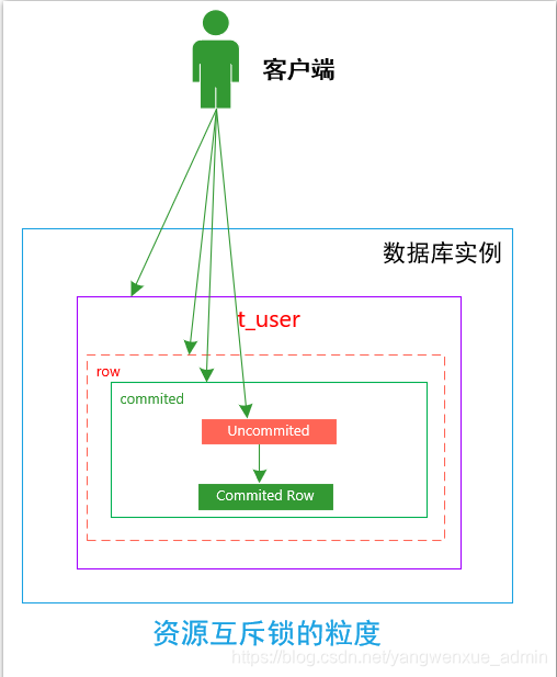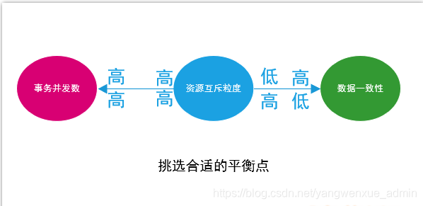 对上述的四种事务隔离级别的阐述中,我们使用了从资源互斥访问的角度做了解释。资源互斥粒度控制的越细,客户端事务的并发能力就越高,但是与此同时,会相应地降低数据的一致性。