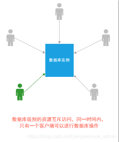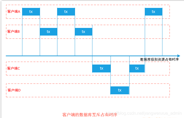 当客户端访问数据库时,各个客户端以互斥的方式进行访问。交互方式如下图所示: