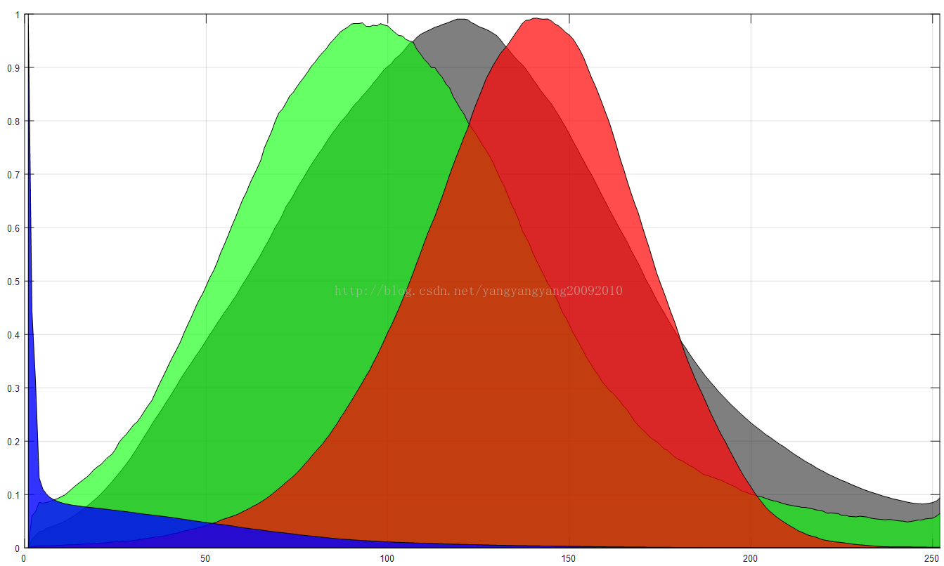 T2 = area(smooth(hist_C(2,:), 5)); xlim([0, 252]); T2.FaceColor='b'; T2.FaceAlpha=0.8;
