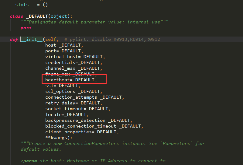 这是我之前测试环境的日志截取的,可以看到是因为这个错误导致的,后来查看pika连接rabbitmq的连接参数中有这么一个参数