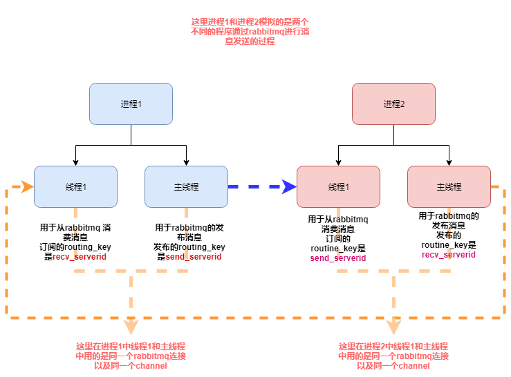 在最开始使用这个rabbitmq的时候,因为本身业务需求,我的程序既需要从rabbitmq消费消息,也需要给rabbitmq发布消息,代码的逻辑图为如下: