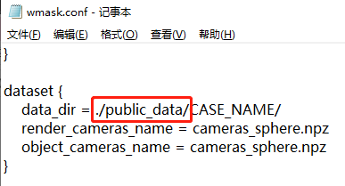根据配置文件中数据指定的存放路径,在NeuS工程内创建public_data文件夹,把下载的开源数据解压放到public_data文件夹下。