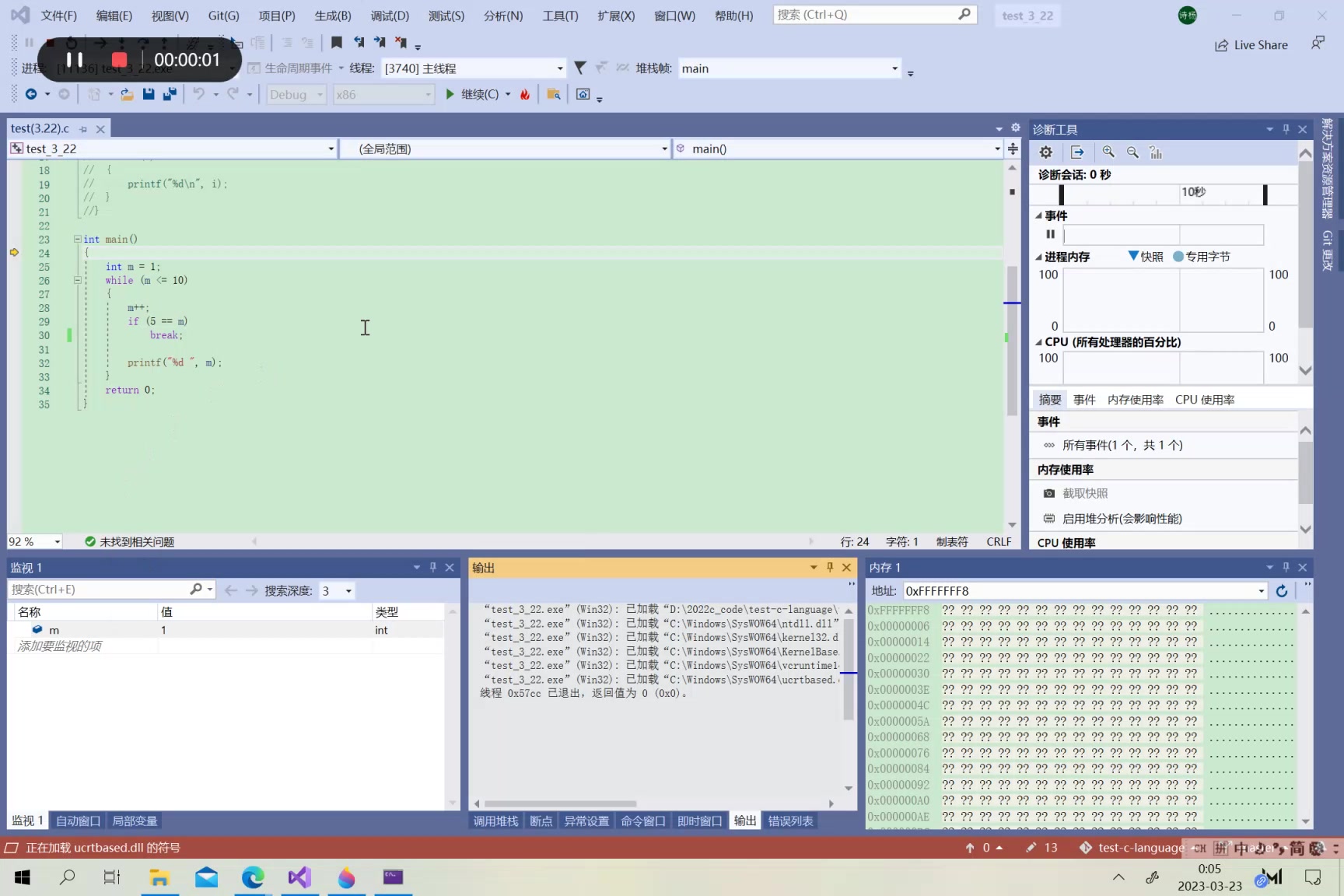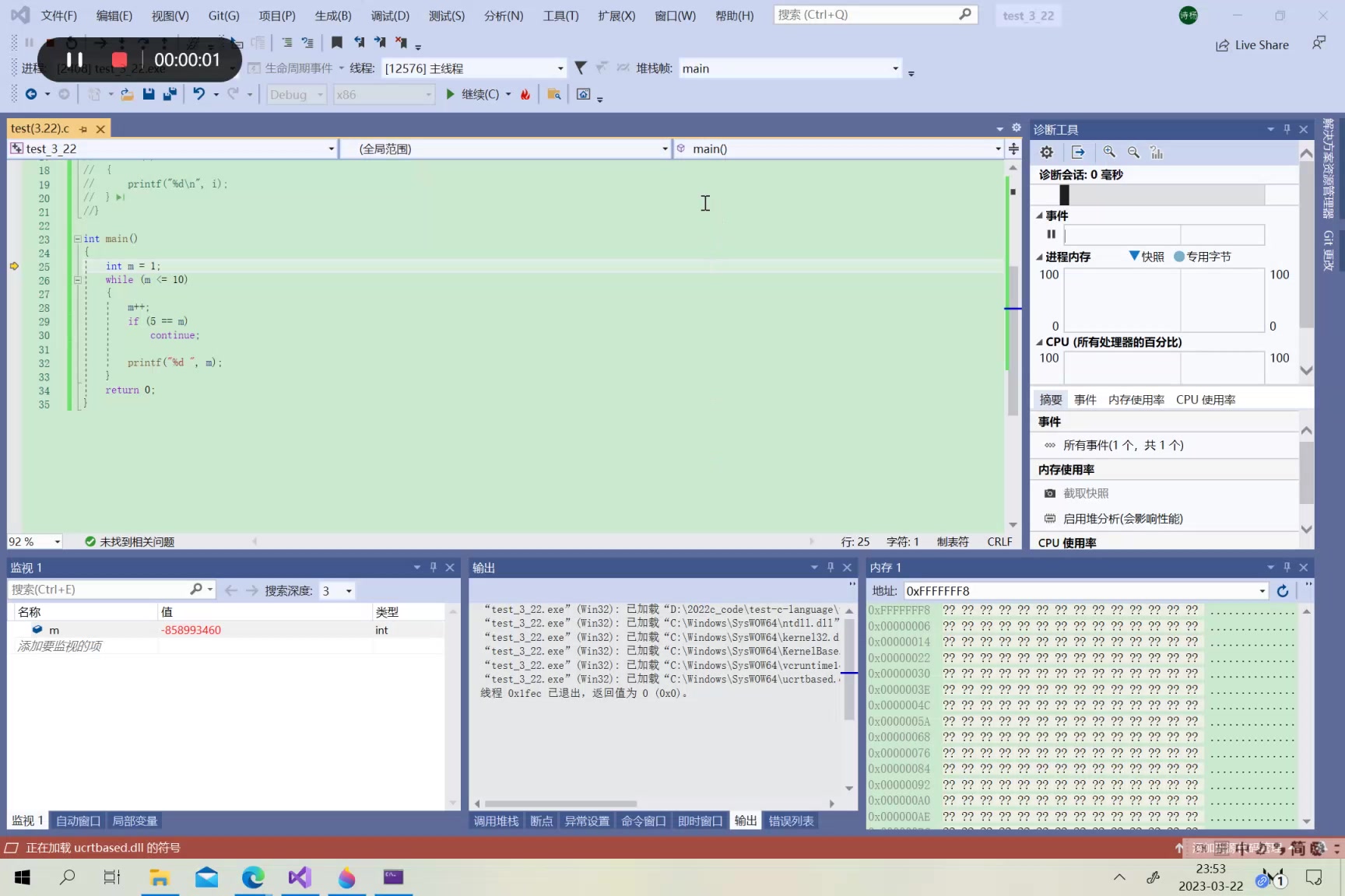 【C语言】循环语句——while 到 i == 5的时候遇到continue,不断退回到判断部分,无法运行下去。这串代码的结果是2 3 4 6 7 8 9 10 11。所以结果是2 3 4 6 7 8 9 10 11。这段代码的结果是1 2 3 4 然后无法进行。代码2:仅仅将i=i+1的位置提前了一下。早上起床去吃早饭,一般吃三个包子才饱。,回到判断部分,进行下一次循环的判断。只要m不等于5,代码都可正常运行。吃第三个包子,吃完饱了,不吃了。吃第一个包子,没饱,继续吃。吃第二个包子,没饱,继续吃。遇到m==5,退回到判断部分。
