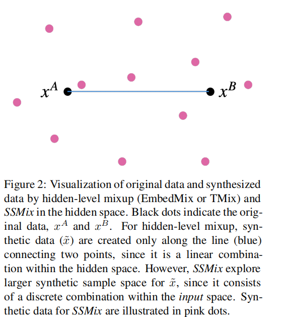由于文本数据的离散性和可变的序列长度,在NLP中应用mixup比在计算机视觉中更具有挑战性和难度。因此,之前大多数关于文本混合的尝试将mixup应用于嵌入向量,如嵌入或中间表示。然而根据计算机视觉的增强直观感受,输入级混合一般比隐藏级混合有优势。这一动机鼓励作者对探究文本数据的输入级混淆方法。