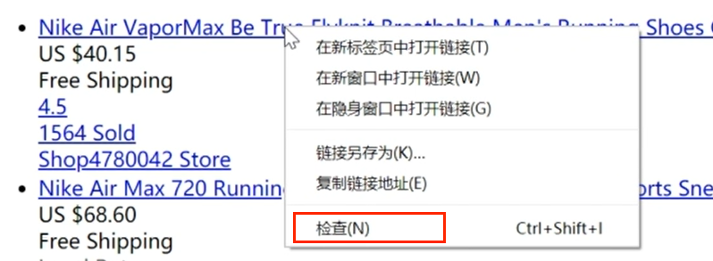 第一步:选择商品标题,右击鼠标,选择【检查】