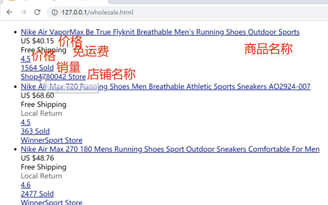 url = 'http://127.0.0.1/wholesale.html' # 网址
