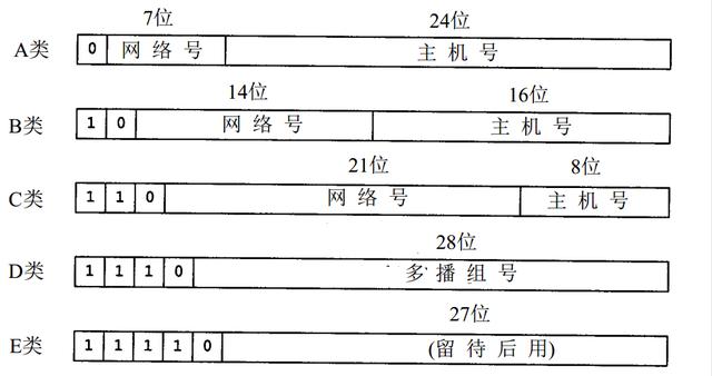 最初设计互联网络时,为了便于寻址以及层次化构造网络,每个IP地址包括两个标识码(ID),即网络ID和主机ID。同一个物理网络上的所有主机都使用同一个网络ID,网络上的一个主机(包括网络上工作站,服务器和路由器等)有一个主机ID与其对应。IP地址根据网络ID的不同分为5种类型,A类地址、B类地址、C类地址、D类地址和E类地址。