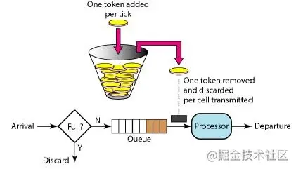 - 水从桶的底部以固定速率匀速流出, 相当于匀速请求
