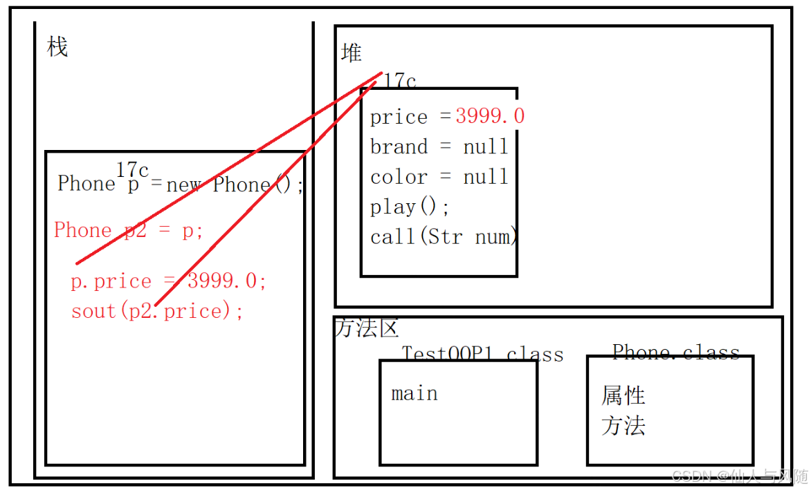 p1.price = 3999.0; System.out.println(p2.price );// 3999 } |