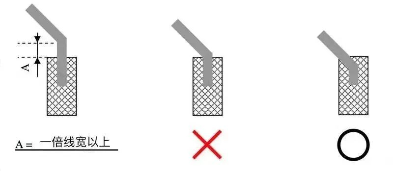 焊盘的出线角度设置避免导线与焊盘形成锐角角度的夹角。