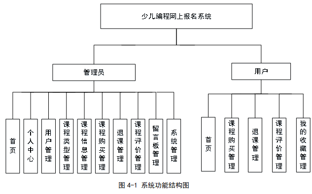 过系统需求分析,该少儿编程网上报名系统功能结构图如图4-1所示: