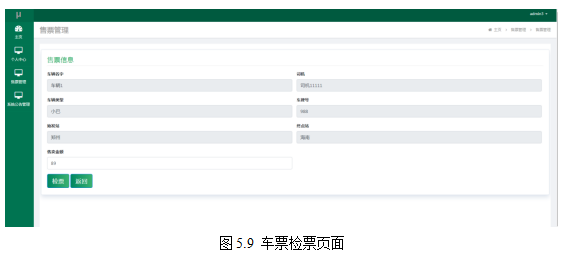 检票管理员进入指定功能操作区之后可以检票。其页面见下图。检票管理员检票时主要是核对车辆的始发站以及终点站等相关信息,信息正确即可检票。