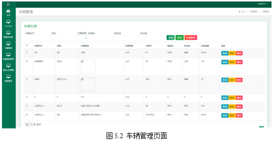 管理员进入指定功能操作区之后可以管理车辆信息。其页面见下图。管理员查询车辆有很多种方式,比如根据司机,根据车辆名字,根据车牌号或者是根据始发站以及终点站等都能查询车辆的信息,另外,管理员也能新增车辆,修改页面内的车辆数据。