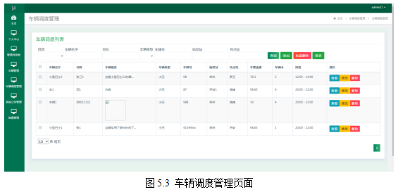 管理员进入指定功能操作区之后可以管理车辆调度。其页面见下图。管理员修改车辆的排班信息,新增车辆调度信息,根据排班信息查询车辆调度信息。
