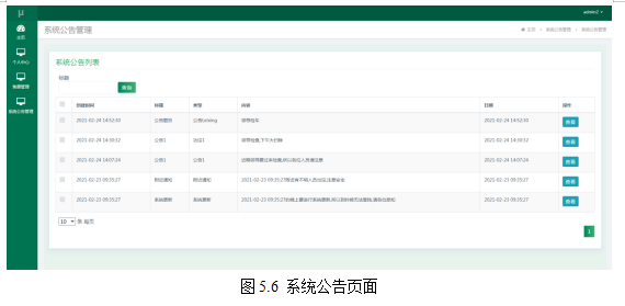 管理员进入指定功能操作区之后可以管理系统公告。其页面见下图。只有管理员才可以管理系统公告,发布公告信息,其他角色用户只能查看。