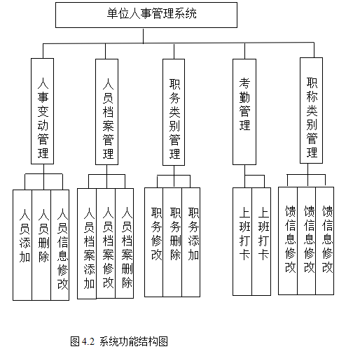 在分析并得出使用者对程序的功能要求时,就可以进行程序设计了。如图4.2展示的就是管理员功能结构图,管理员主要负责填充人员和其类别信息,并对已填充的数据进行维护,包括修改与删除,管理员也需要审核老师注册信息,发布公告信息,管理人员和管理员信息等。