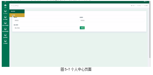 管理员通过用户名和密码填写完成后进行登录,如图5-6所示。管理员登录成功后进入到系统操作界面,可以对主页、个人中心、用户管理、商品分类管理、商品信息管理、系统管理、订单管理等功能模块进行相对应操作。