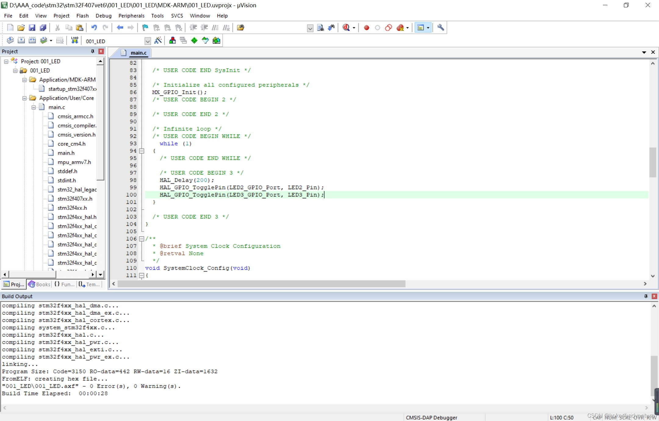 2 在MDK中编写、编译、下载代码
