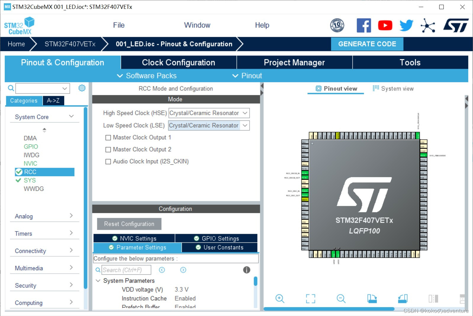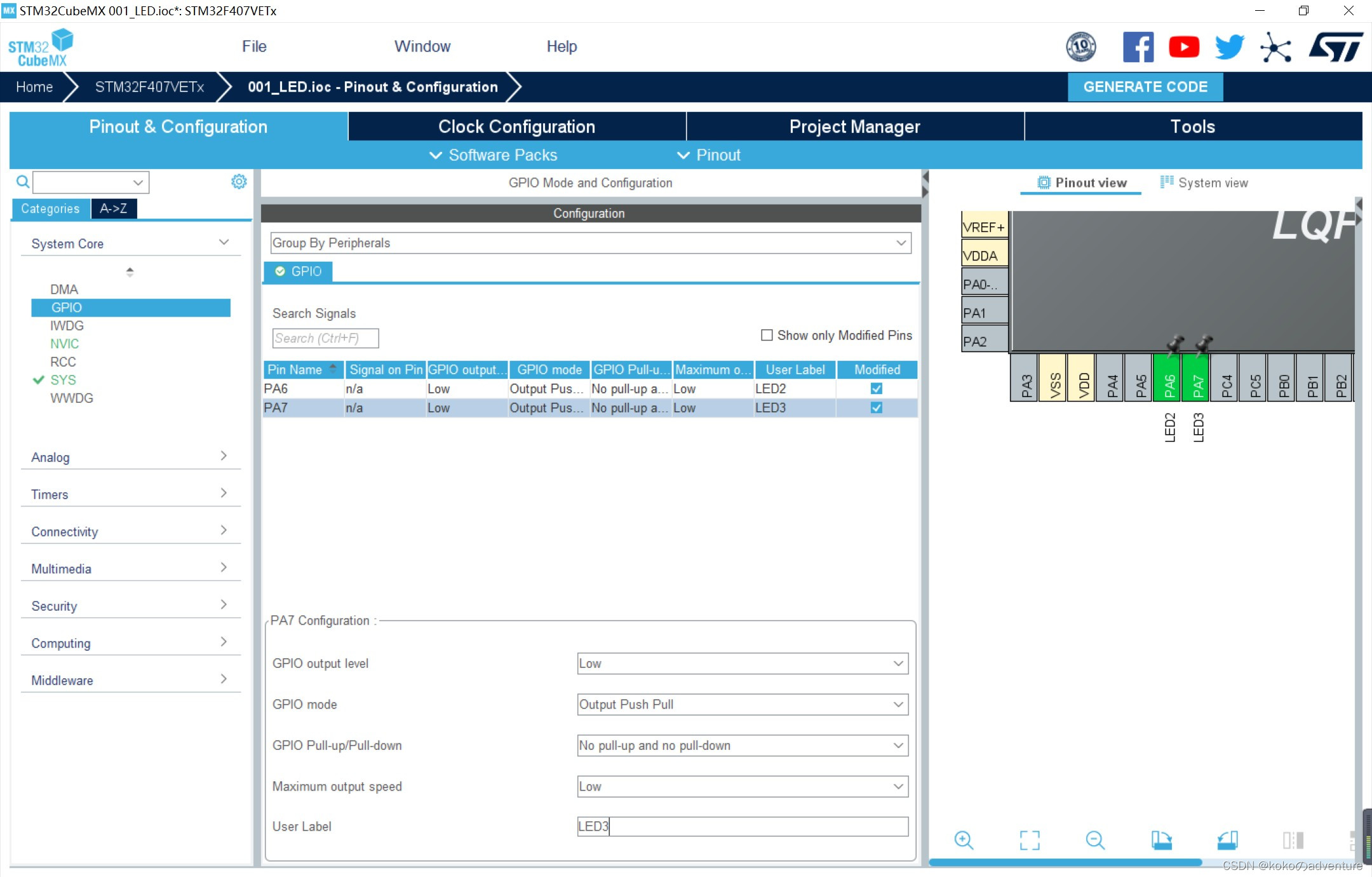 本文详细介绍了如何使用STM32F407VET6的GPIO模块通过HAL库驱动LED灯,包括硬件连接、软件配置(Keil uVision5、STM32CubeMX)、GPIO初始化及编程步骤,适合初学者入门学习。