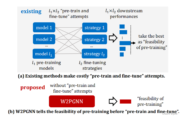 【图论文阅读】When to Pre-Train Graph Neural Networks? From Data Generation Perspective! 论文来源:SIGKDD2023以往的研究通常从和的角度进行研究,即通过设计各种图预训练模型和微调策略来缓解负迁移。然而,在某些情况下,即使使用最先进的“预训练和微调”范式,仍然无法明显改善下游性能。文章从数据的角度回答,提出了名为的通用框架。探究在什么情况下下游任务可以从图预训练中受益,从而避免不必要的预训练和微调过程。具体来说:如果下游数据可以由一个总结了预训练数据的generator以很高的概率生成,那么这些下游数据更有可能从预训练中受益。