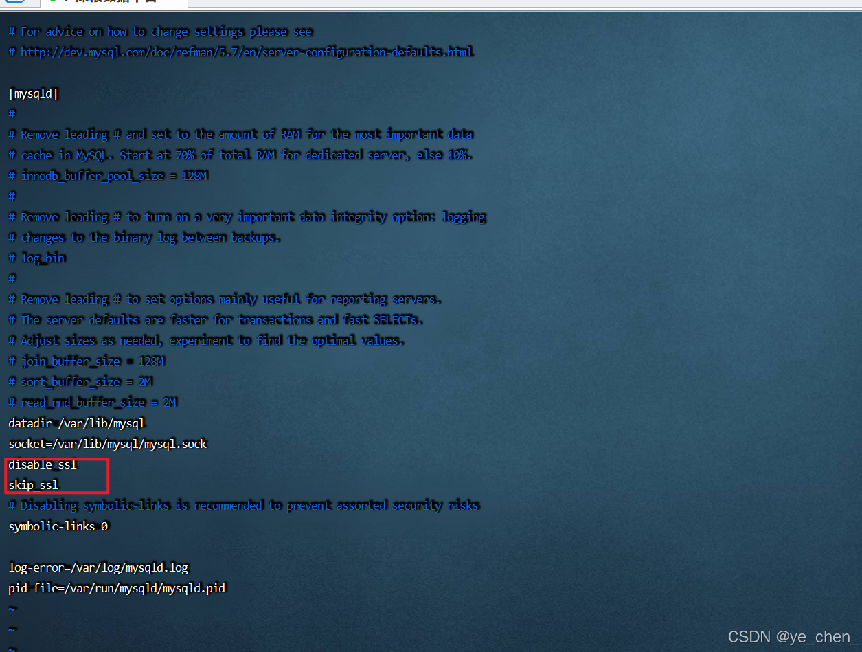 在MySQL配置文件(/etc/my.conf(也可能是.cof))中添加disable_ssl和skip_ssl参数,然后重启数据库