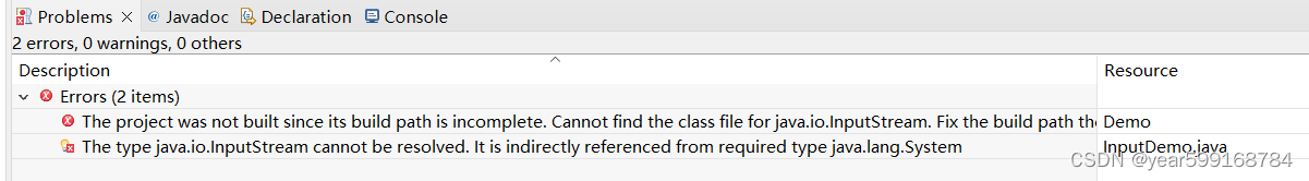 【Java】System.in报错The type java.io.InputStream cannot be resolved. It is indirectly refer...解决办法 system.in不明报错解决办法
