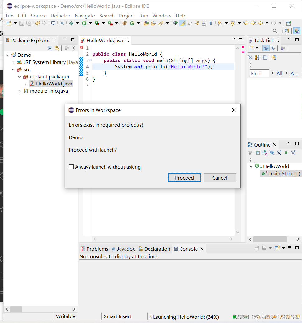【Java初学】Eclipse新建类无法运行“Errors exist in required project(s)” 运行新建的class文件,弹出报错提示框Errors exist in required project(s)的解决办法