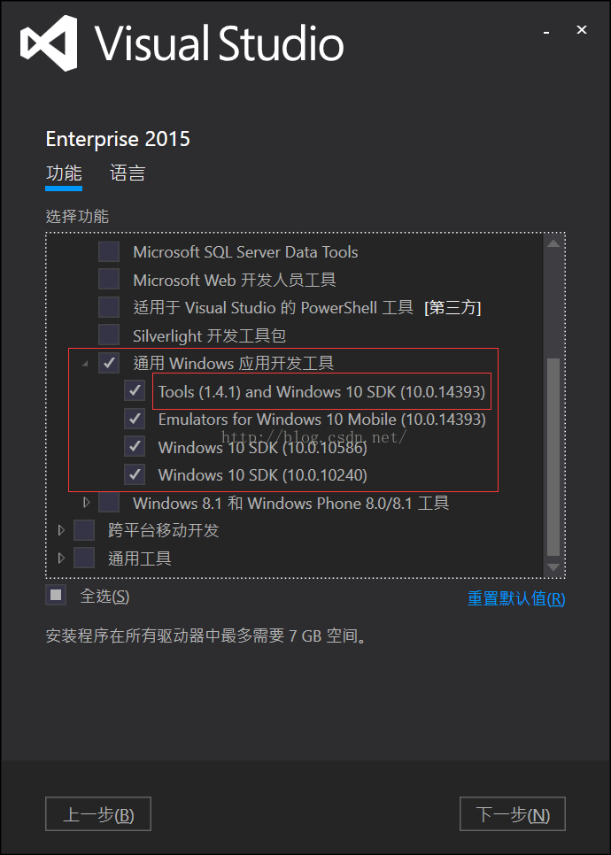 安装vs2015确保在update 3及以上,所有的vs2015版本都支持,包括社区版。注意安装的时候勾选Tools (1.4) and Windows 10 SDK (10.0.10586),如果不装HoloLens Emulator将会装不了。,如何安装查看以下的问题1