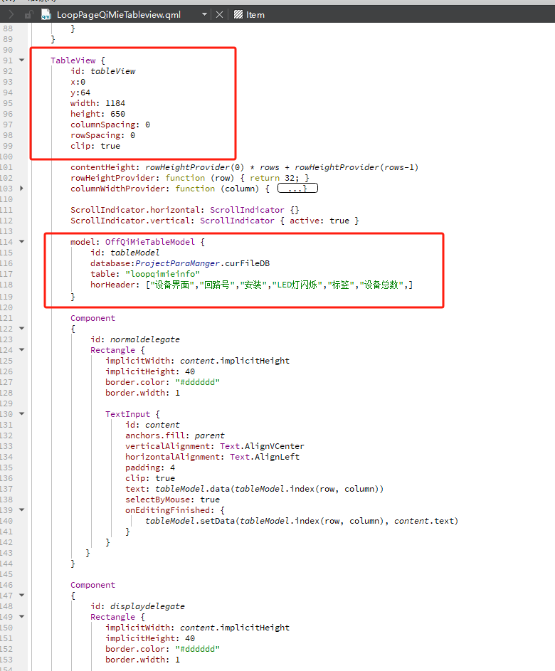 一、UI层使用QML的TableView 组件, 加载C++写的数据model, 然后表格 各列都可以使用不同的代理, 比如说直接编辑,下拉列表选择,选中组件。 还有增加行,删除行按钮