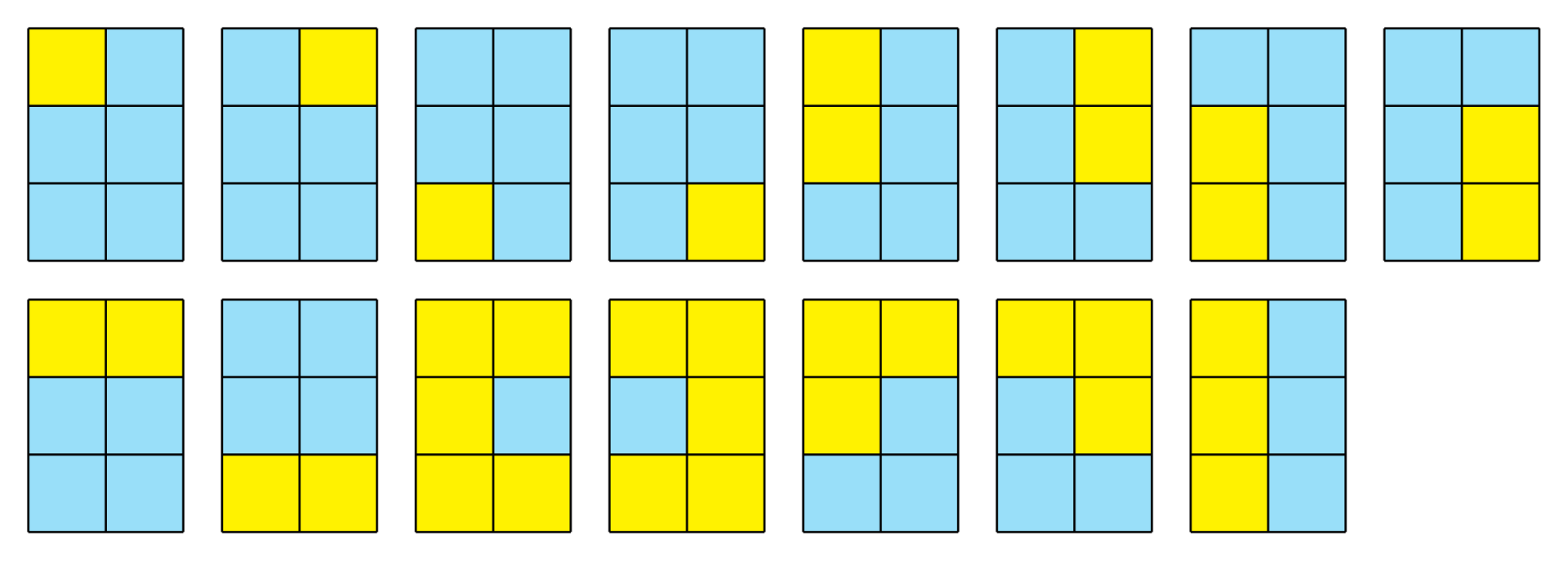 有一个长为 a,宽为 b 的矩形(1≤a≤6,2≤b≤6)。可以把这个矩形看作是 a×b 个小方格。