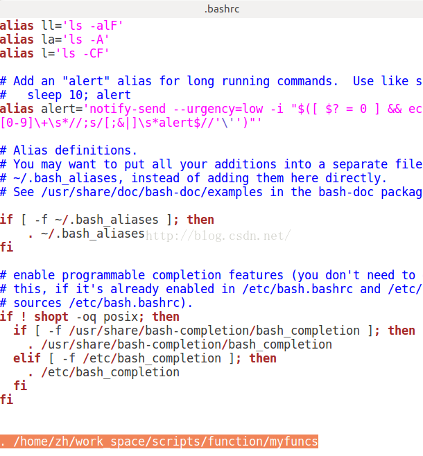 来在shell脚本中运行库文件脚本,这样函数就对脚本可用了。source命令有个快捷别名,称作点操作符(dot operator) ,要在shell 脚本中运行myfuncs库文件,你只需要添加下面这行: