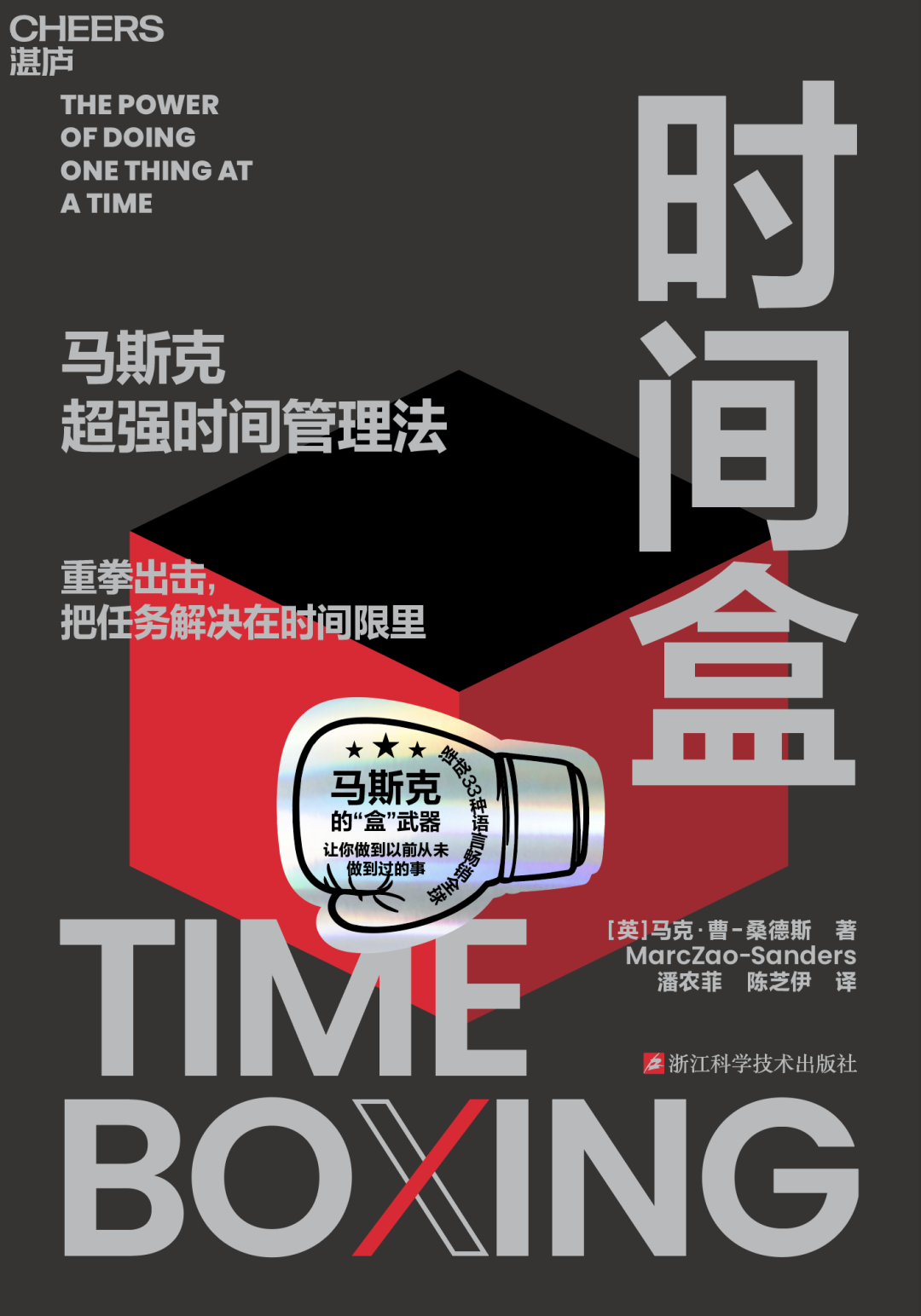 由科技公司Filtered.com首席执行官兼联合创始人马克·曹-桑德斯(Marc Zao-Sanders)撰写的《时间盒》(Time Boxing)一书首次完整系统地阐述了马斯克的时间盒管理法。英文原版一经出版便被译作33种语言,在全球范围内引发讨论与关注。作者通过10多年的亲身实践,从如何创建时间盒,到如何在日常工作和生活中使用时间盒管,提供了详尽的步骤和实践指南,确保读者能够迅速掌握并应用这一方法实现个人效率的提升和生活质量的改善。