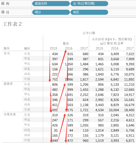 不同的计算依据决定了表的计算方向。不同的计算类型有不同的可选的计算依据。这里只介绍几个常用的计算依据,如果以后遇到新的,会再补充。这里仍然以【超市】数据为例。以下涉及到的计算类型据均为: 汇总。(表计算-计算类型:https://blog.csdn.net/yeshang_lady/article/details/104879868 )