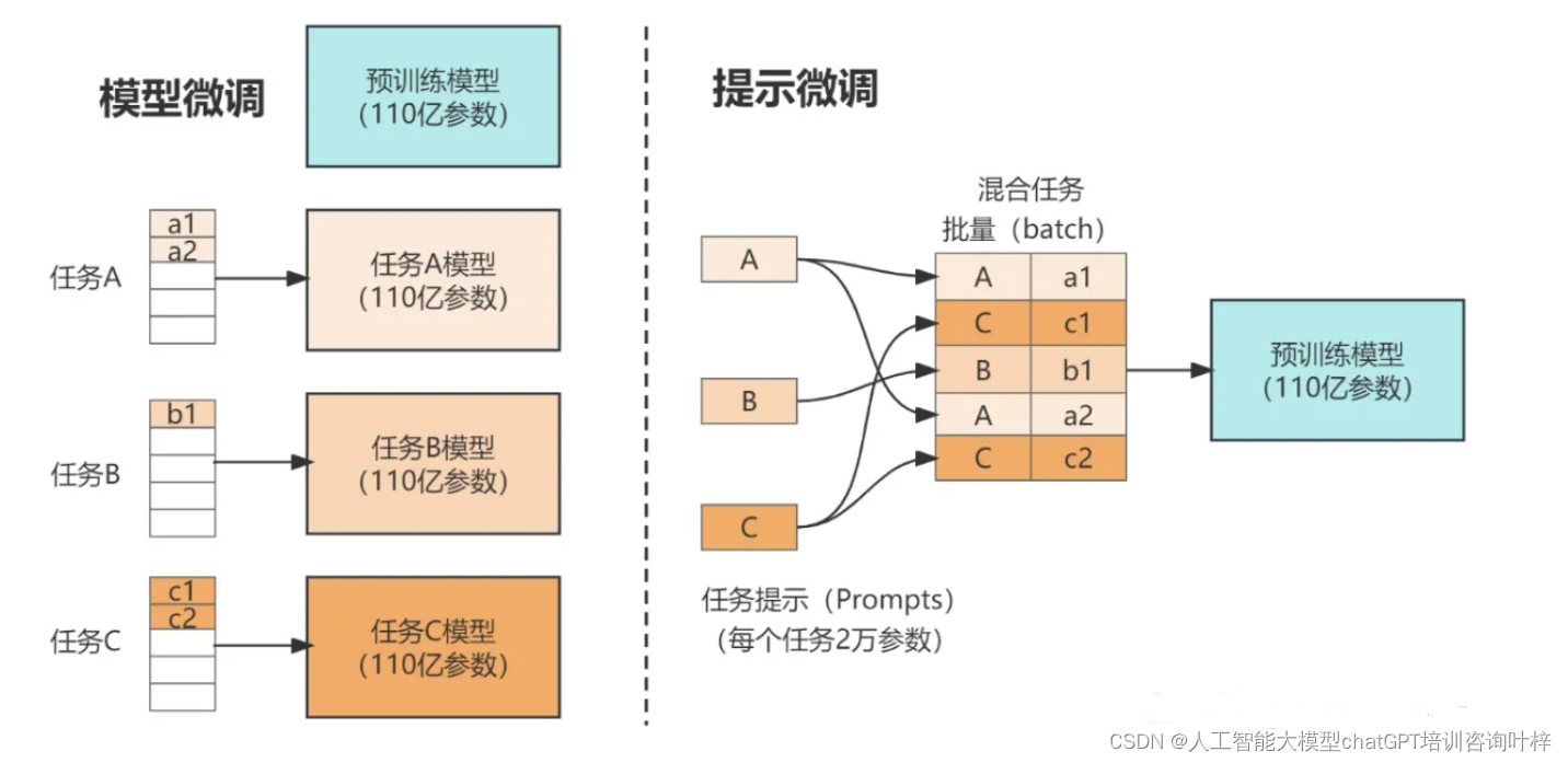 - 任务通用性:在一些复杂的任务上,简单的提示可能难以达到与全参数微调相媲美的性能。