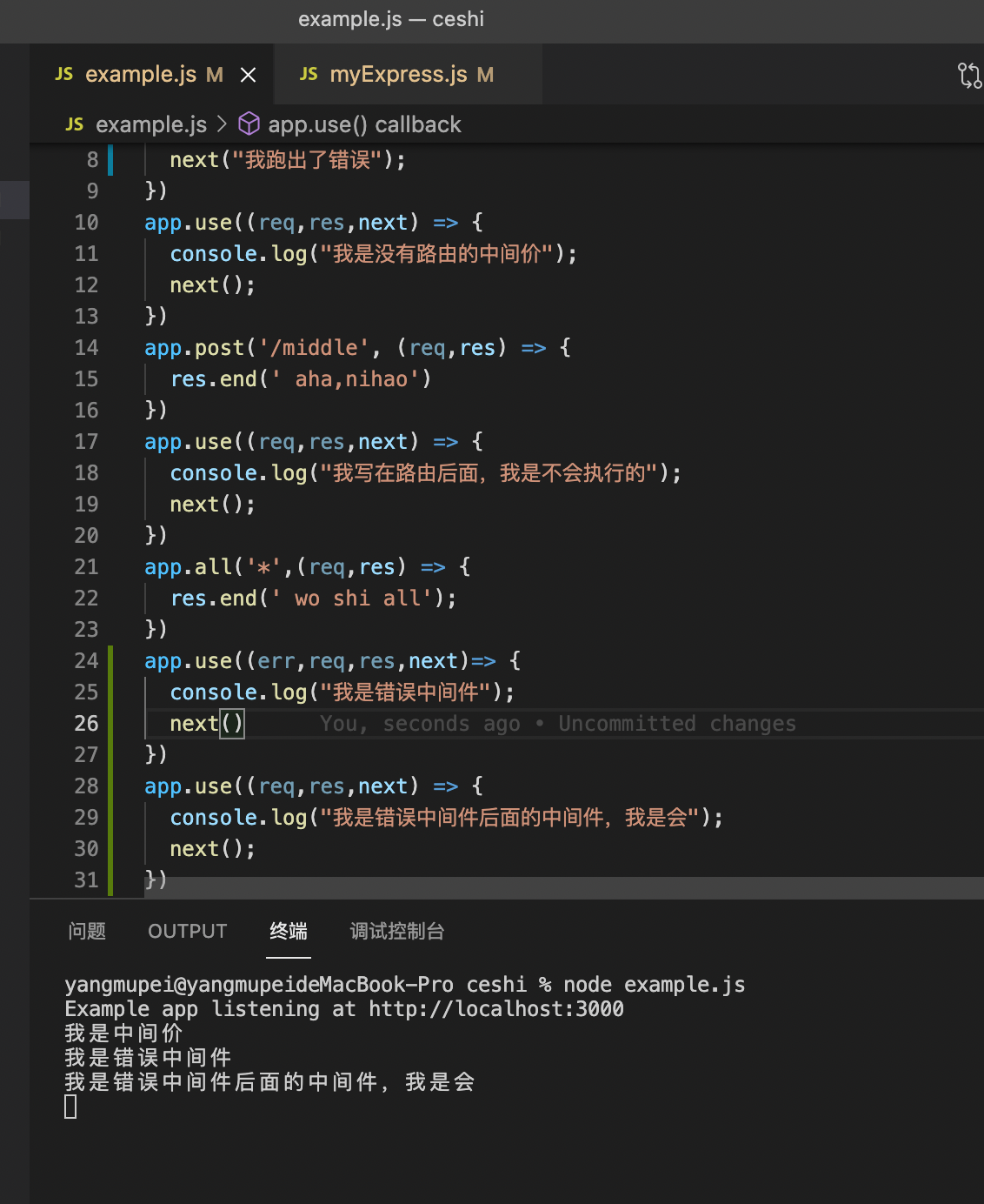 实际上,中间件已经完成了,但是别忘了,还有个错误中间件?
