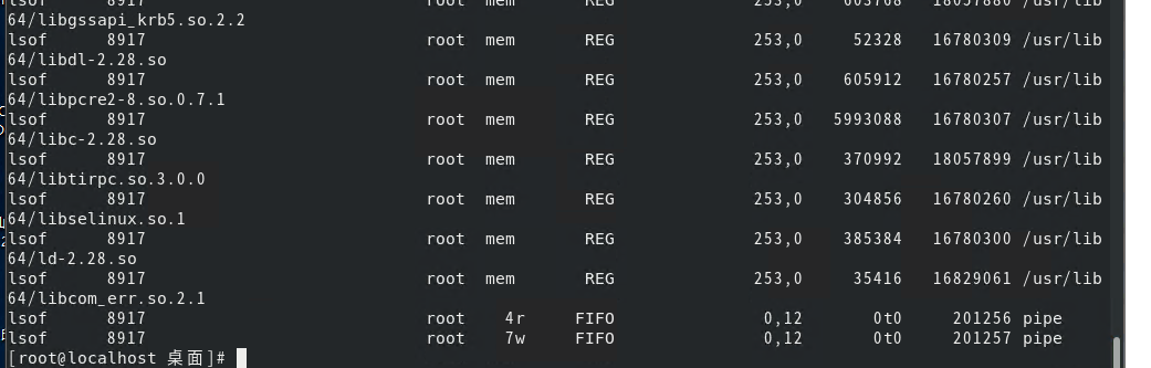 lsof : List Open Files的缩写,可列出各种进程打开的文件信息,如下图所示: