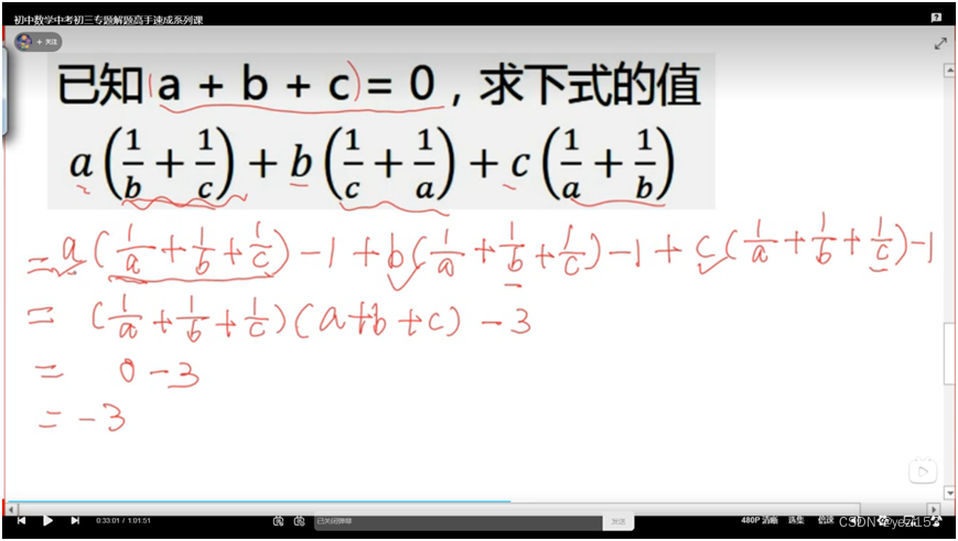 把括号里面的变成公共的部分,可以用到a+b+c=0这个条件