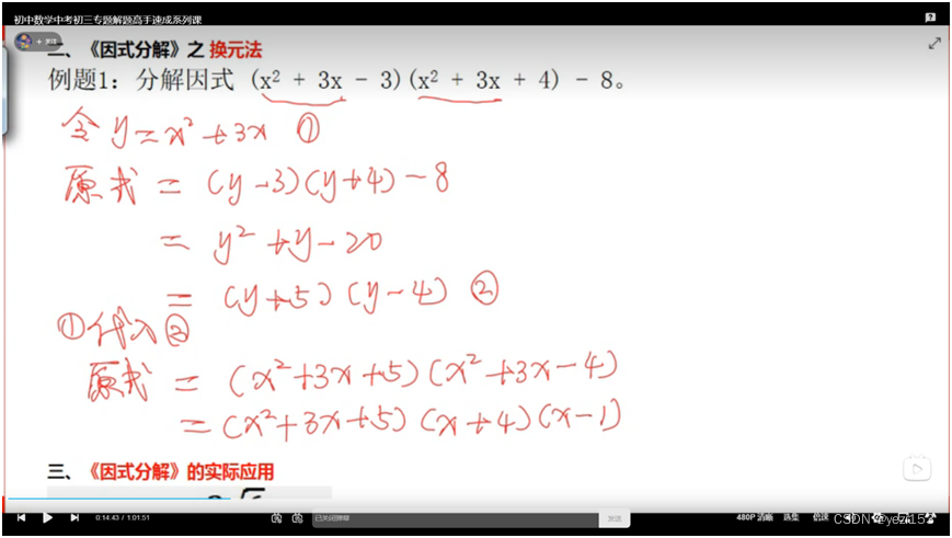 这里存在相同的部分,相同的部分还是一个二次函数,应该使用换元使式子更加简单