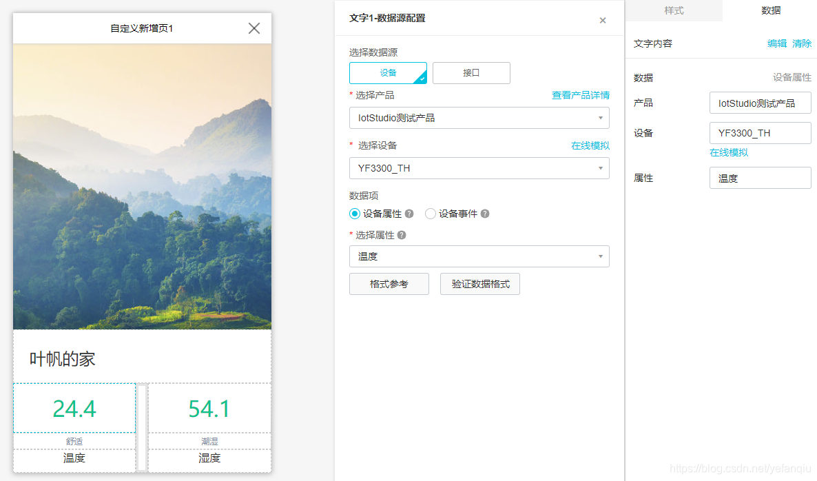 (4)关联产品/设备 关联上面步骤创建的 产品/设备 获取温湿度属性