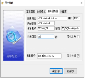 A.服务配置中在相应的地方填入设备三元组,填入产品密钥,服务地址会自动更改,扫描间隔可更改,变化上传可勾选