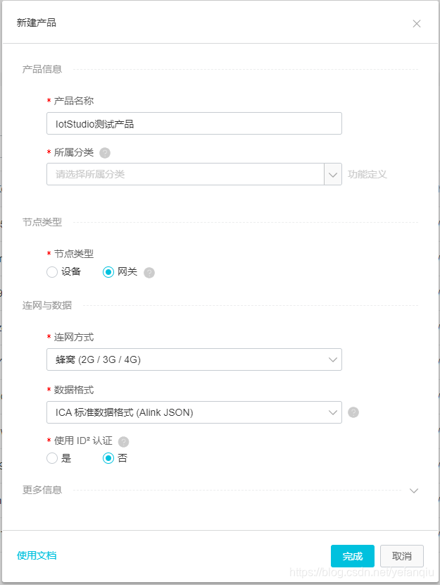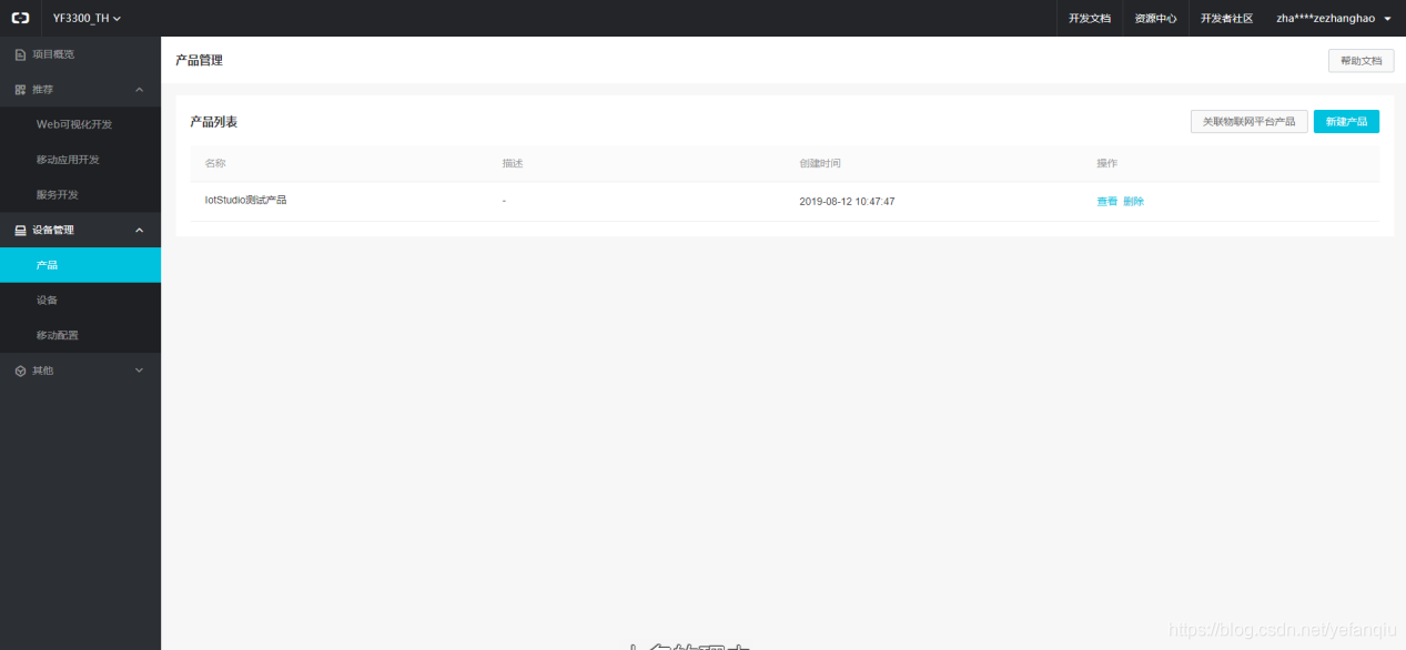 a.左侧导航栏选择设备管理 > 产品。在产品管理页面,单击创建产品