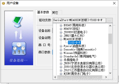 注意事项:串口号应选择串口COM2 创建设备名应与云端设备名保持一致(YF3300_TH)其它默认