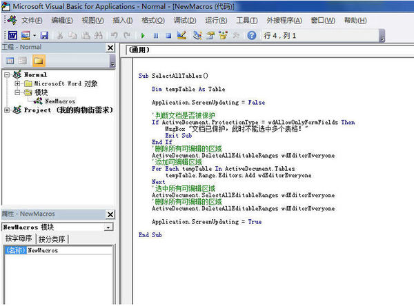 2 word---视图---宏----查看宏----输入宏名:SelectAllTables----点击创建