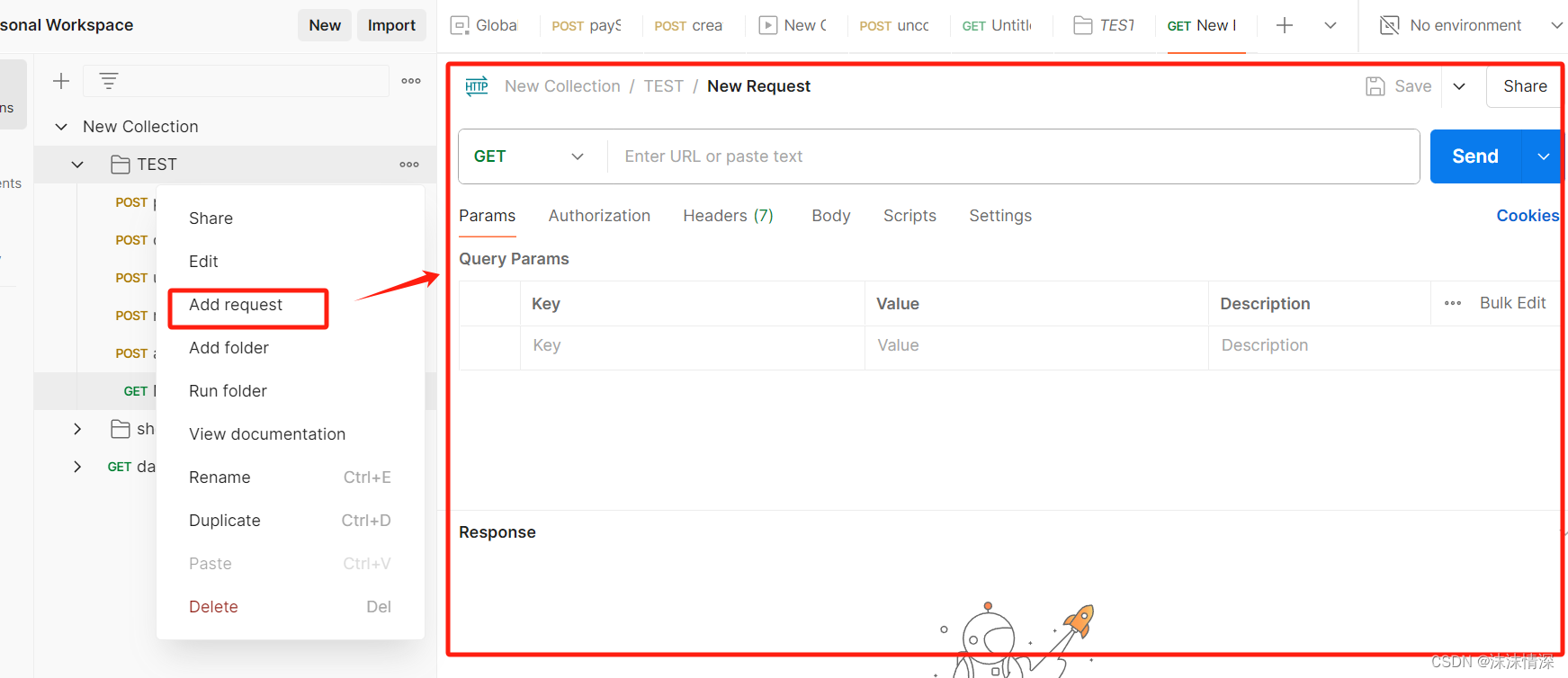 2、输入访问的接口(注意请求方式是get还是post),headers模块这里输入token,如果网站有权限设置,没有token,就会访问失败。(注意:Body里面的参数名一定要和创建的csv文档的参数名一致,并且用{{}} 两个大括号括起来,我这里都是"serNoMY")PS:还在学习中,勿喷,如果有错误的地方请多指教!请求方式引用他人的文档,如果不适,可以联系我删除。1、文件右键,新建一个请求,右边弹出请求的参数。4、先点击文件夹,然后右边弹出按钮Run。5、点击Run按钮,会出现这个界面。
