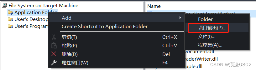 2、右键Application Folder >点击 Add>点击项目输出>点击确认后>旁边则会生成一个主输出的文