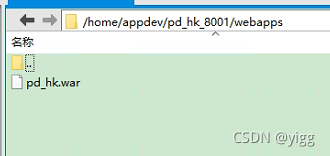 注: /home/appdev/pd_hk_8001/web 就是 上传web应用后的位置,pd_hk是项目名