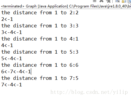 System.out.println("the distance from 1 to "+(i+1)+":"+d[i]);