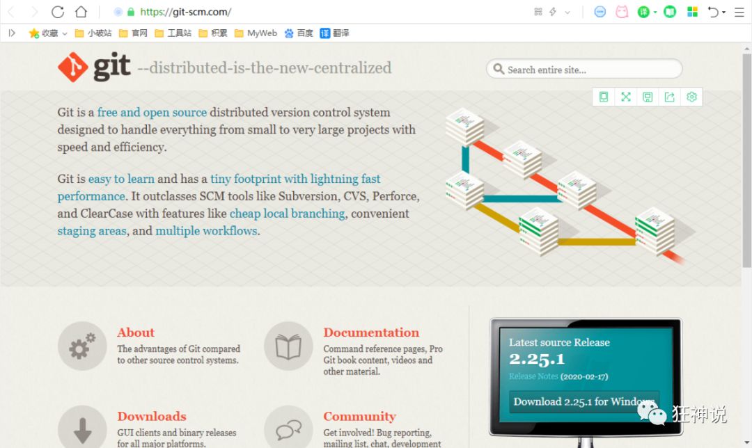 打开 [git官网] Git,下载git对应操作系统的版本。