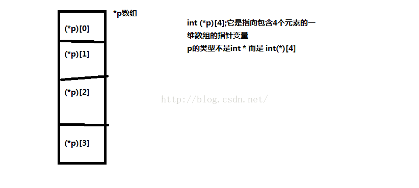 1,由于[] 优先级高与*所以int *p[4]它先p[4]是定义数组的形式然后和*结合,*p[4]就是数组指针(一个数组中存放的内容是指针变量)