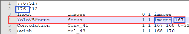 修改后, 注意YOLOV5Focus层的输入是image输出是167, 上面的185改为176, 因为用1层替换了10层: